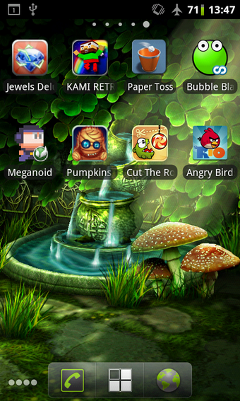 De makers van Celtic Garden hebben een paar mooie achtergronden geproduceerd. Zo krijg je het vakantiegevoel met de My Beach wallpaper en vind je ultieme rustmomenten bij de Spring Zen achtergrond. De Celtic Garden is een fraaie tuin met klavertjes en paddenstoelen. Net als bij de andere 'live wallpapers' voor Android beweeg je door de tuin door naar verschillende startschermen te gaan. Dat gebeurt allemaal in 3D en ziet er prachtig uit.